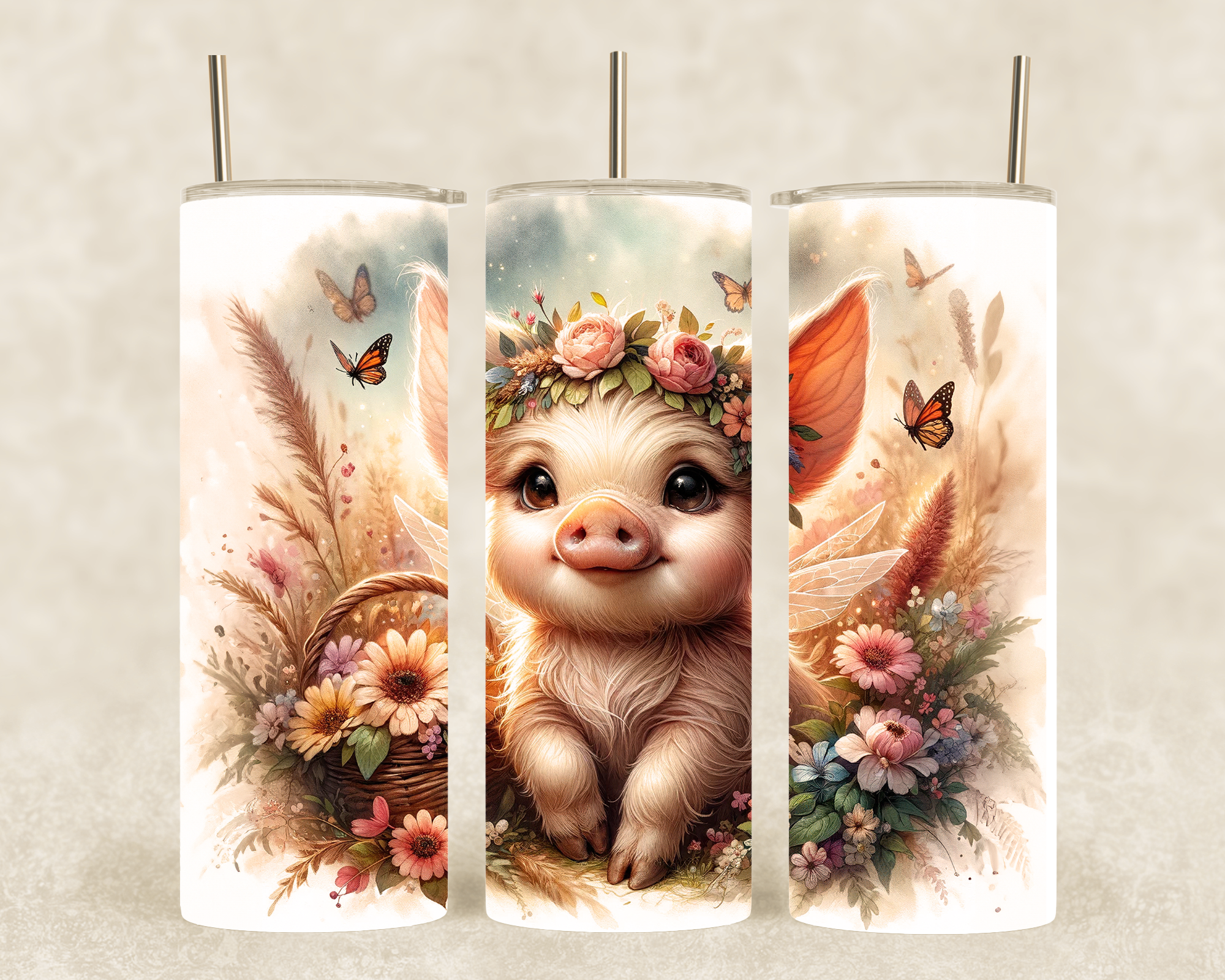 Meadow Pig tumbler with a beautiful white cream background with a cute pig. Our Tumbler is metal. All tumblers come with a lid and a metal straw. It also has an anti-slip bottom to prevent the tumbler from sliding. The tumbler needs to be hand washed only. All tumblers come shipped in its personal box and bow.
