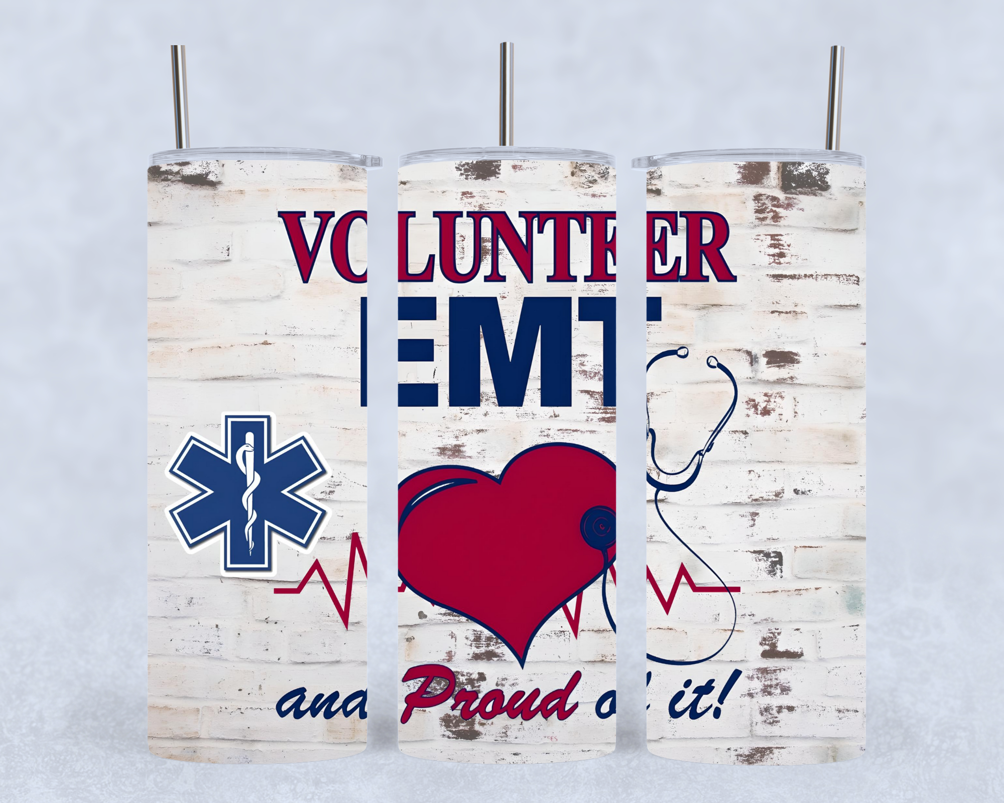 This is our 20 oz Volunteer Tumbler. The print is sublimated onto the tumbler to maximize durability and image quality. It is a 20 oz skinny tumbler.
