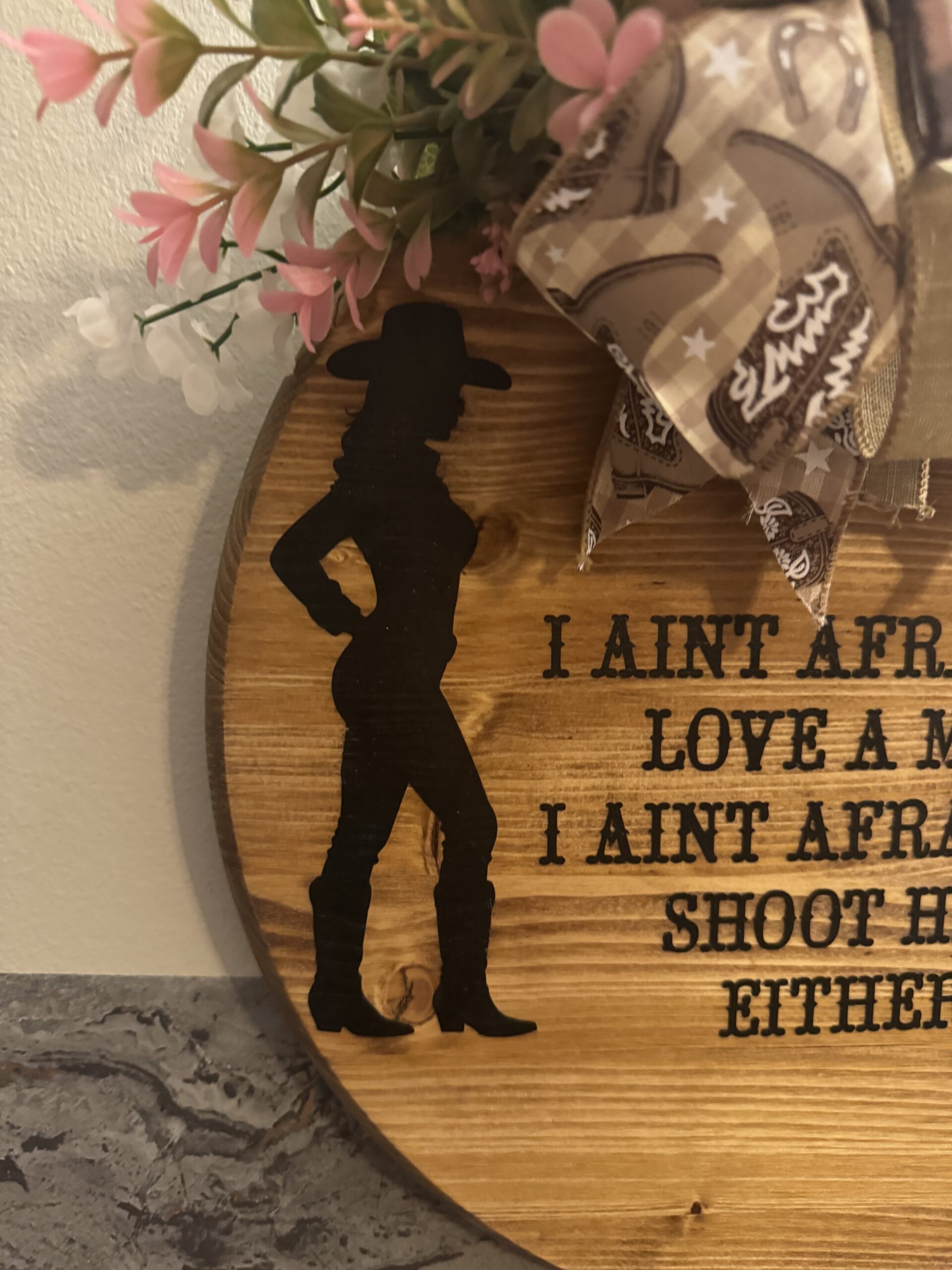 Cowgirl I Ain’t Afraid To Love A Man And I Ain’t Afraid To Shoot Him Either Hanging Door Sign