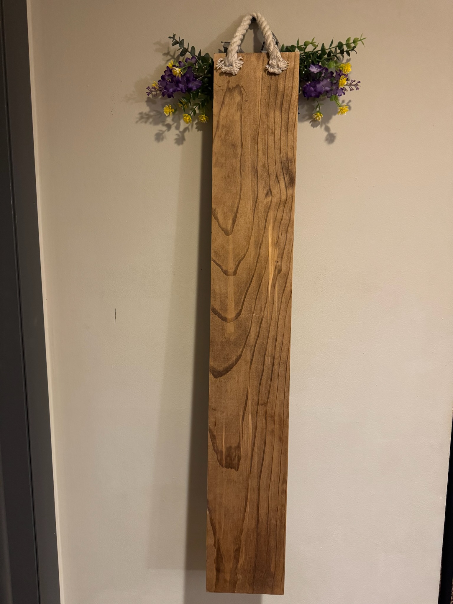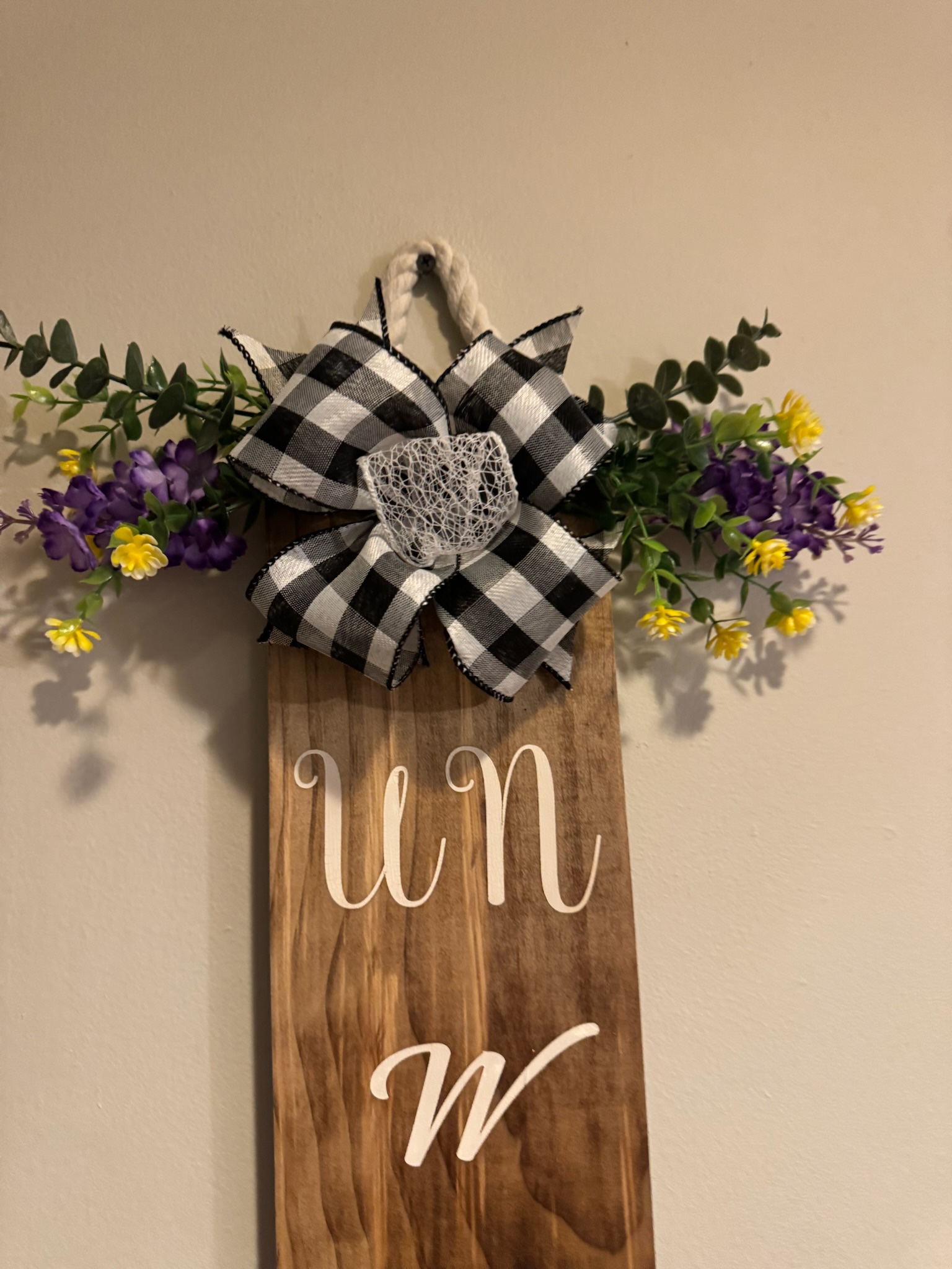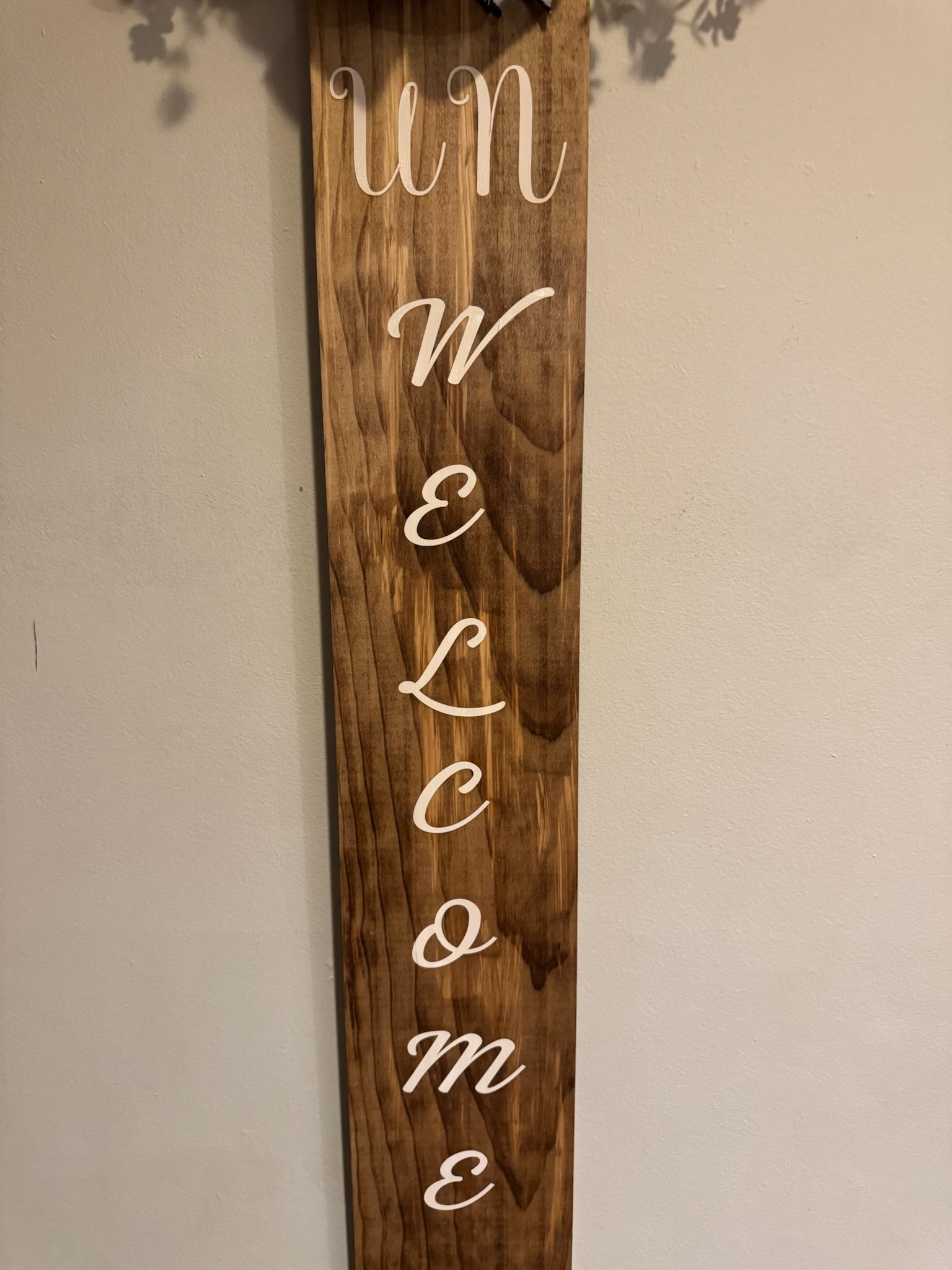 This is beautifully stained piece of wood with a sarcastic saying “Un Welcome” written in white. If you have that sense of humor, this is the sign just for you. This board is weather-sealed and ready to be hung at your home.