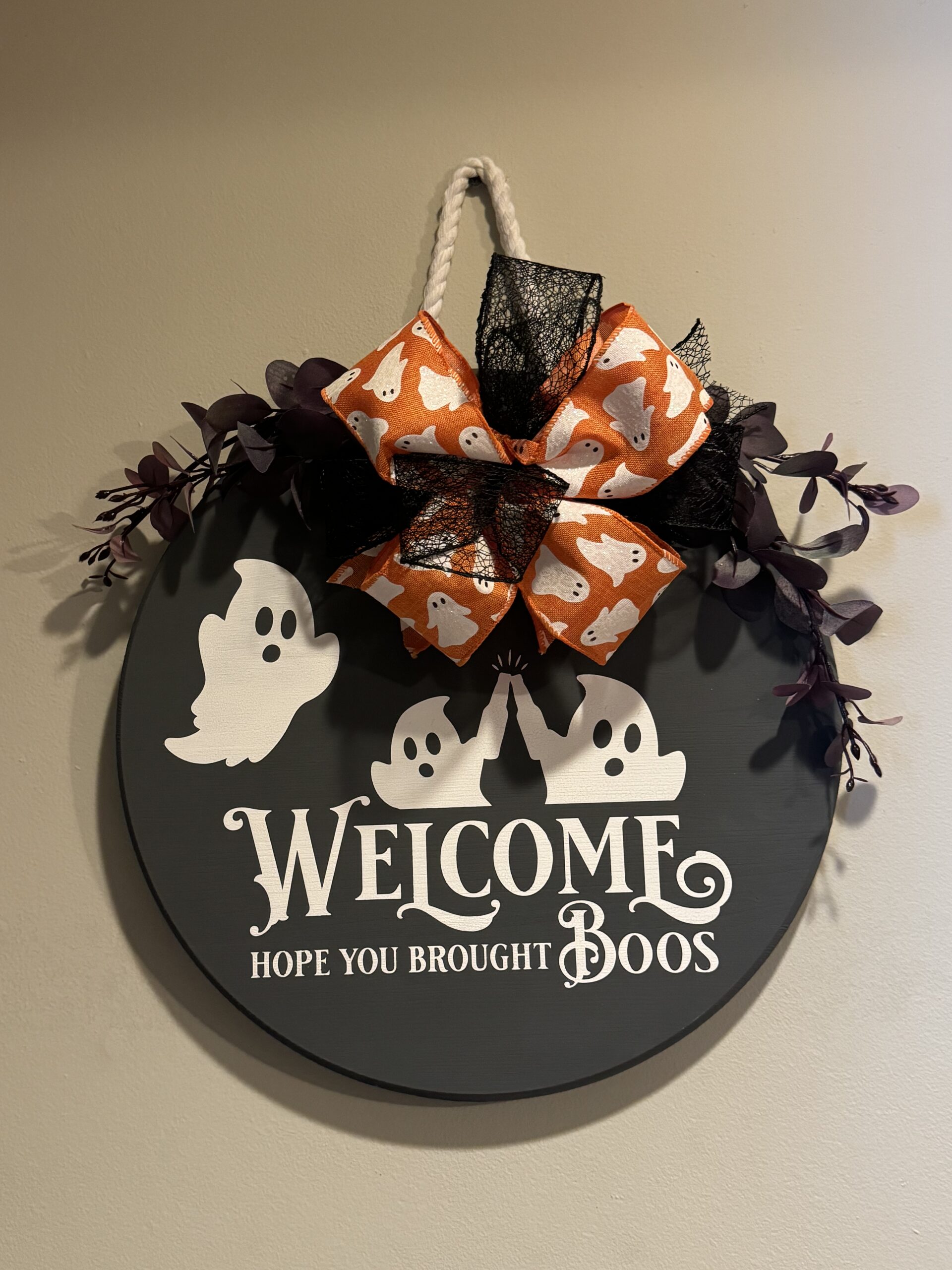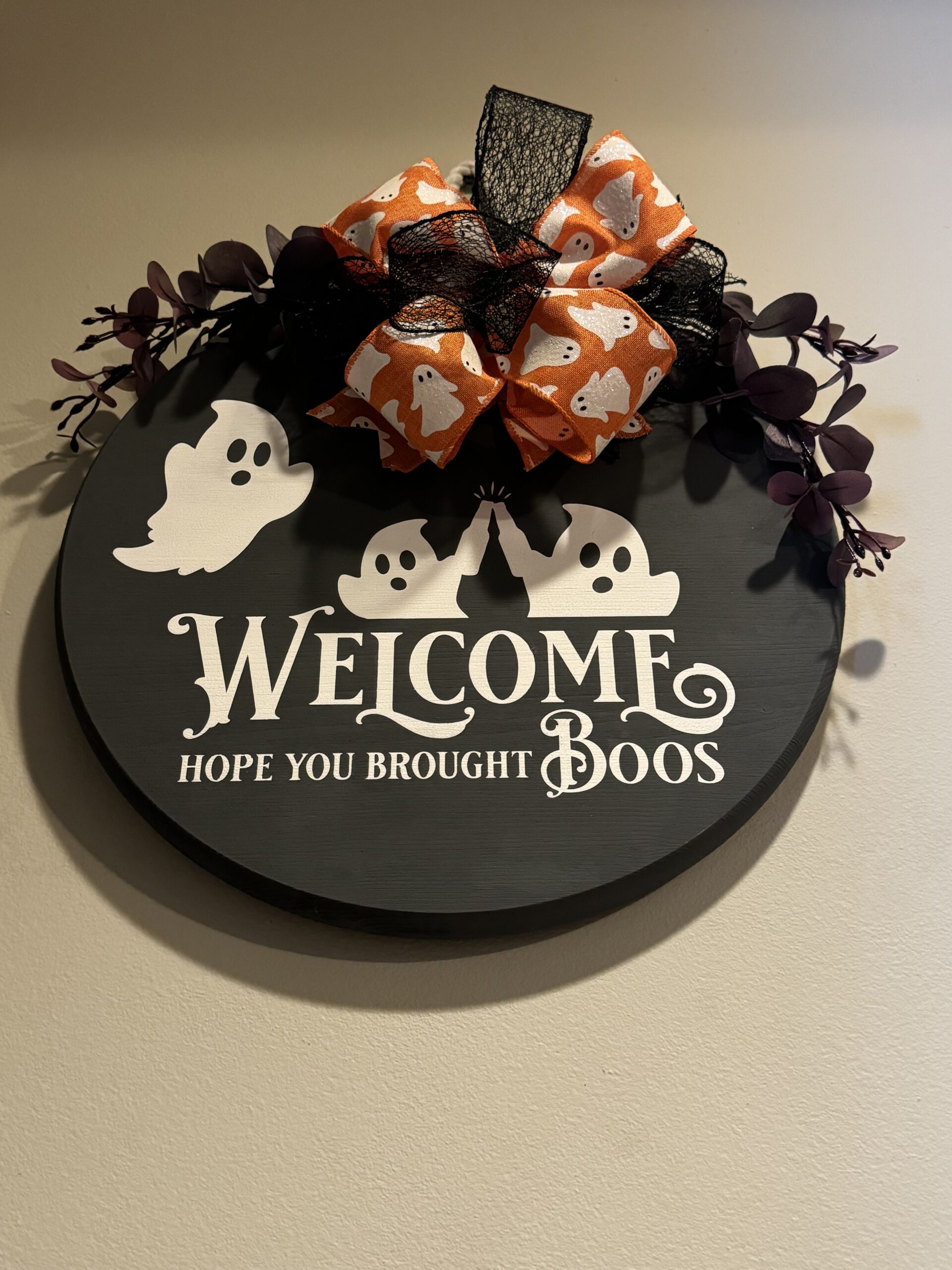 🎃 Halloween Hanging Door Sign – Welcome Hope You Brought Boos